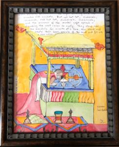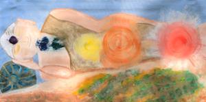 | Reclining Buddha | Reclining Buddha (2013), acrylic on canvas, size 29.25 x 58.5 in. Hang as a tapestry or stretched on a frame. Make a frame and stretch yourself, or have it done professionally. Mock-up photo (from Michael's Arts & Crafts) shows the painting stretched with frame. They priced a sturdy/lightweight wood stretcher and gold wood frame at about $235 on October 22nd, during a sale. This is a good price! Starting bid $55. Estimated value $450 after being stretched and framed. | 1 | 000450.0 | 450 | .00055E7 | 55 | ||